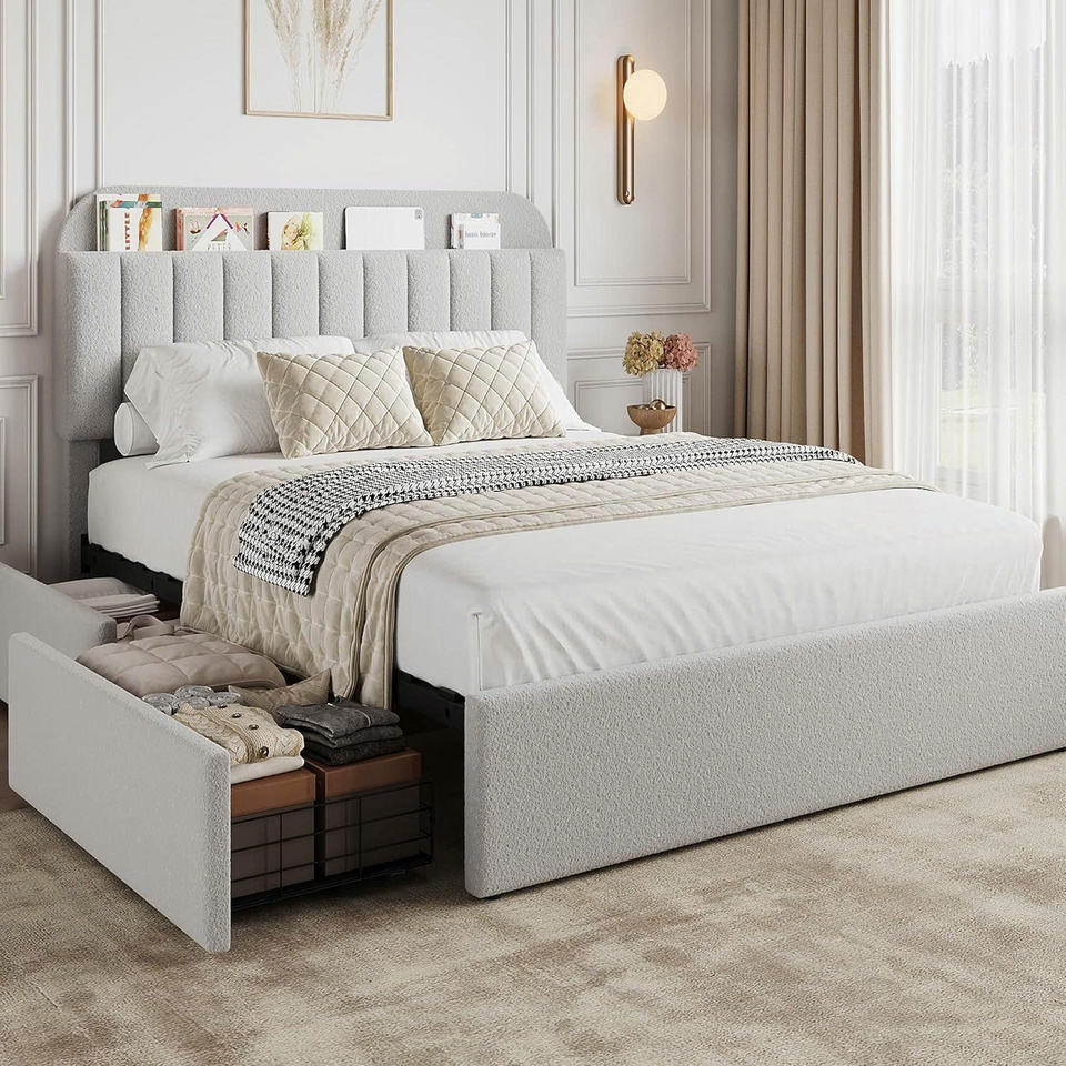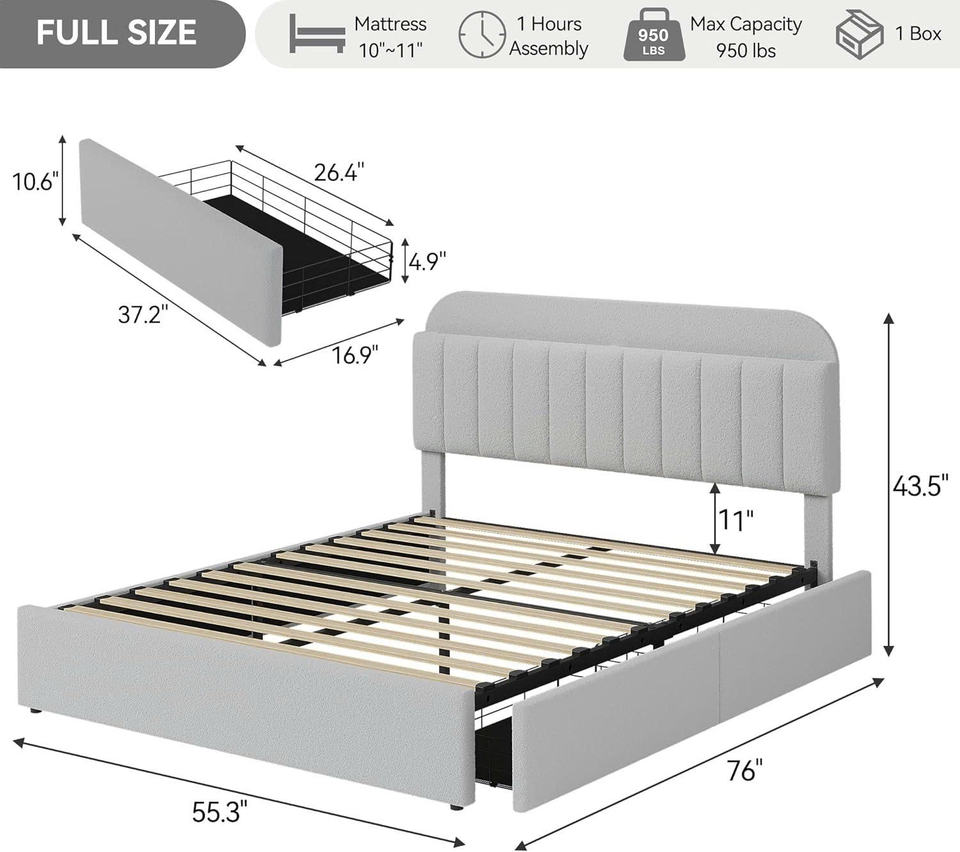 TRIHO-HB-052 Modern Full Bedroom Furniture, Storage Headboard Bed Frame with 2 Drawers, No Box Spring Needed, Easy Assembly