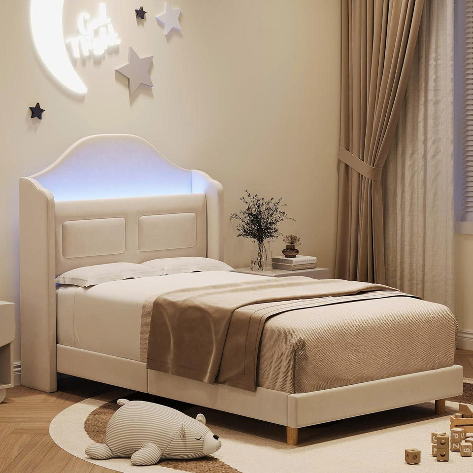 TRIHO-HB-060 Modern Bedroom Furniture, Smart LED Headboard Bed Frame with Charging Station & Storage Drawers, Kids Twin Full