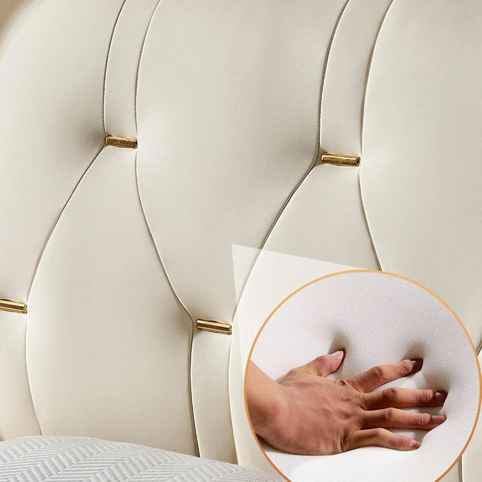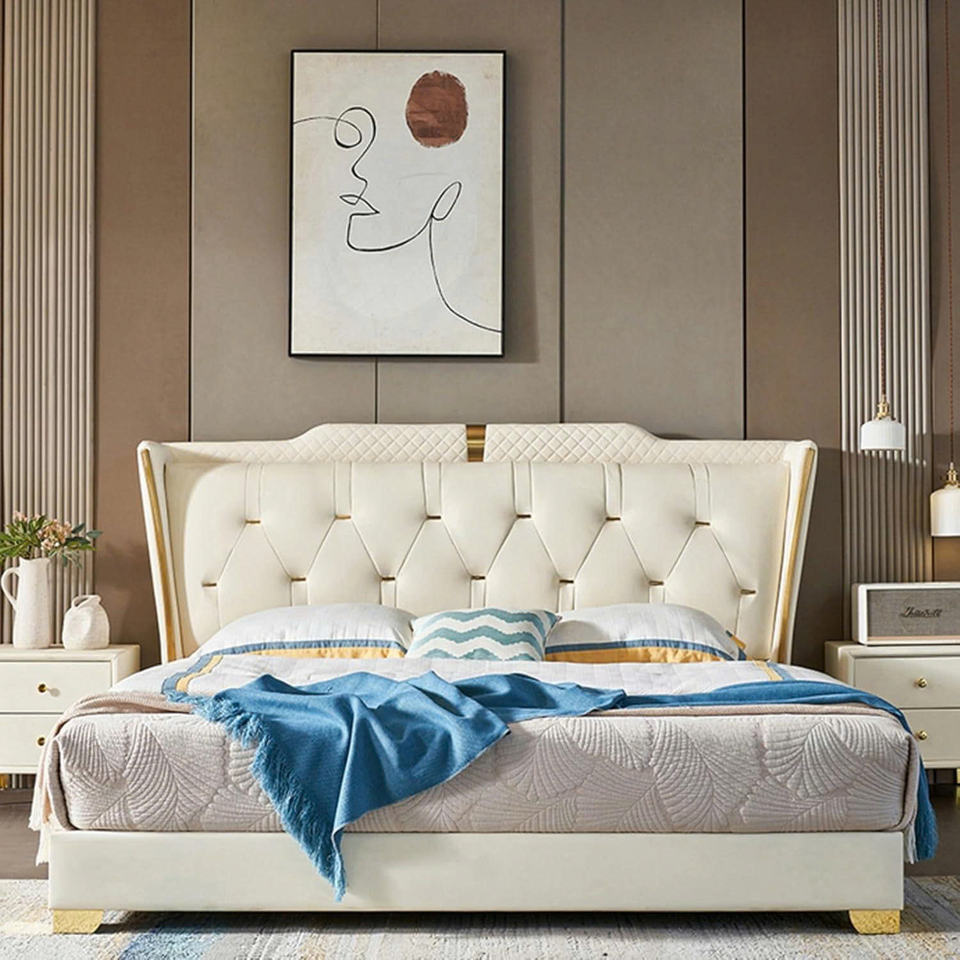 TRIHO-HB-064 Luxury King Genuine Leather Bed, Modern Upholstered Headboard, Strong Wood Slat Support Bed Frame, No Box Spring