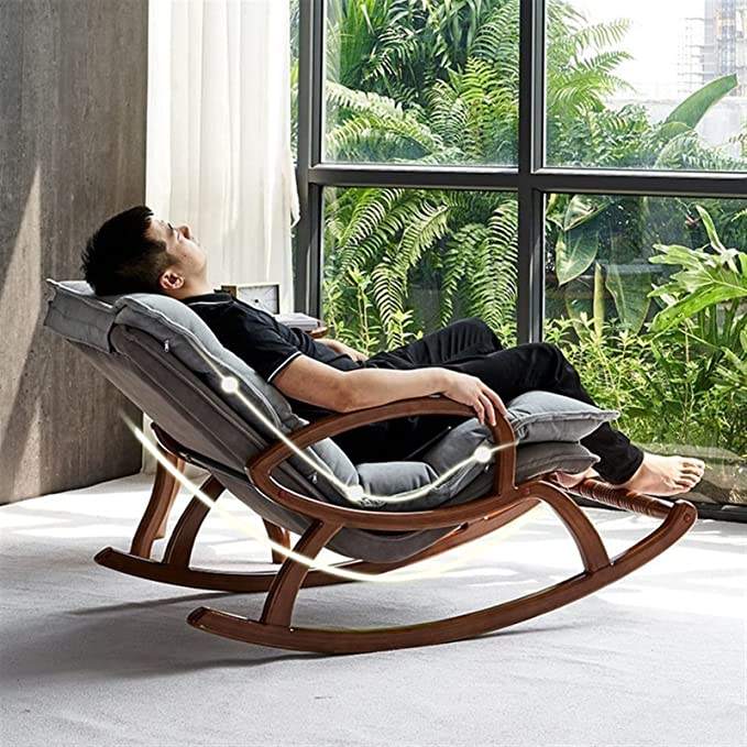 TRIHO S81034 Living Room Comfortable Wood Furniture Lazy Recliner Lounge Chair Balance Wooden Rocker Rocking Chairs