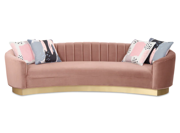 TRIHO S81849 Luxury Nordic 3 Seater Living Room Sofa Modern Fabric Velvet Pink Curve Recliner Bean Foam Office Lounge Asian