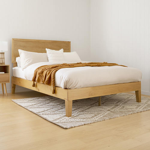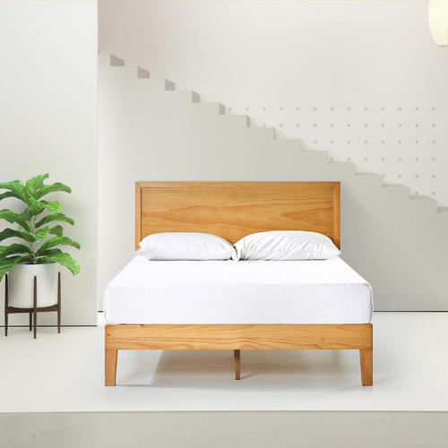 TRIHO THF-1004 Mid-Century Modern Solid Walnut Wood Window-Pane Style Queen Size Platform Bed