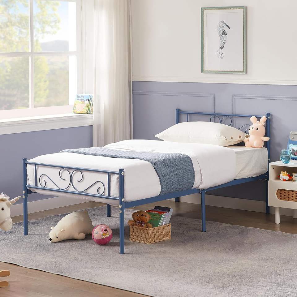 TRIHO THF-1689 Luxury Modern Queen Size Metal Platform Bed Frame Victorian Vintage Headboard Simple Storage Home Furniture