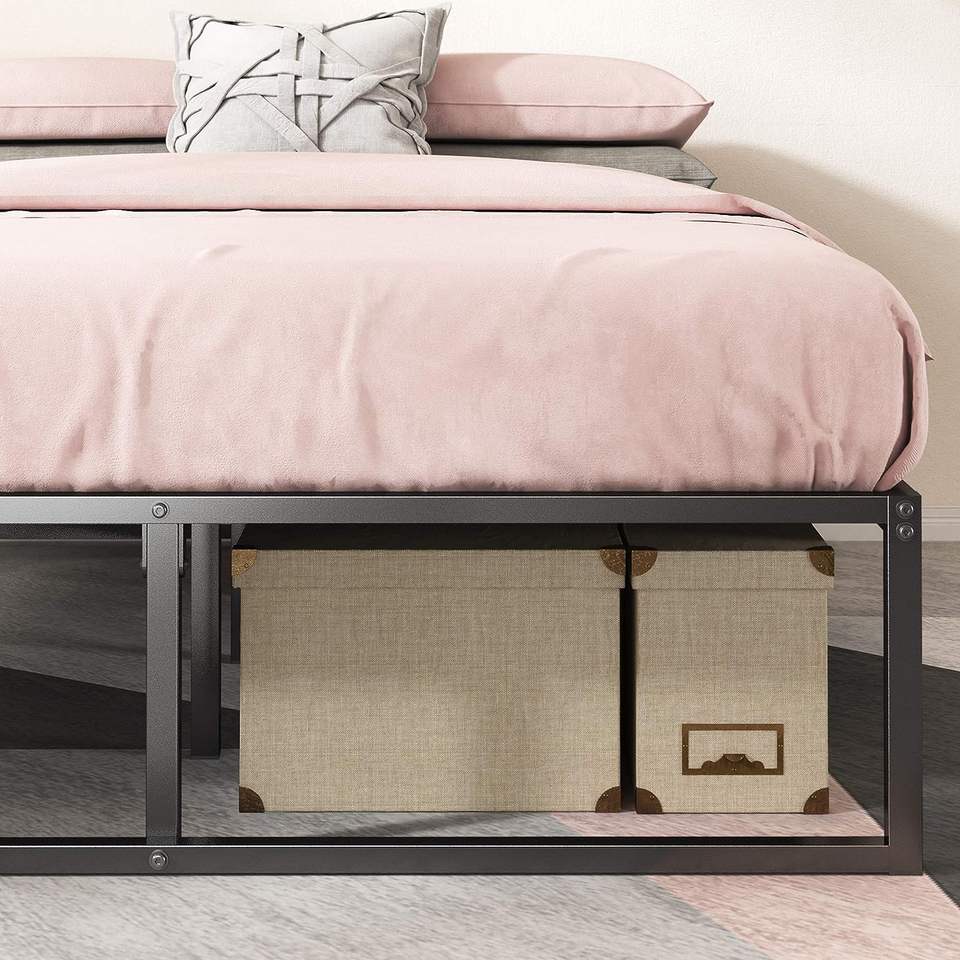 TRIHO THF-1707 Foldable Design Heavy Duty Metal Platform Bed Frame with Storage Space Under Frame Sturdy Steel Slat Support