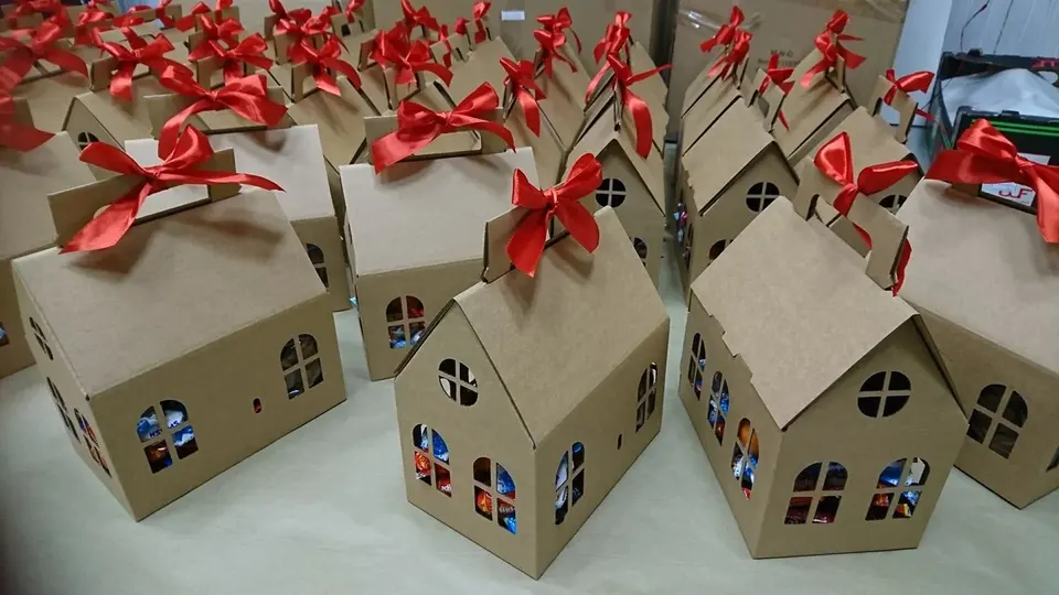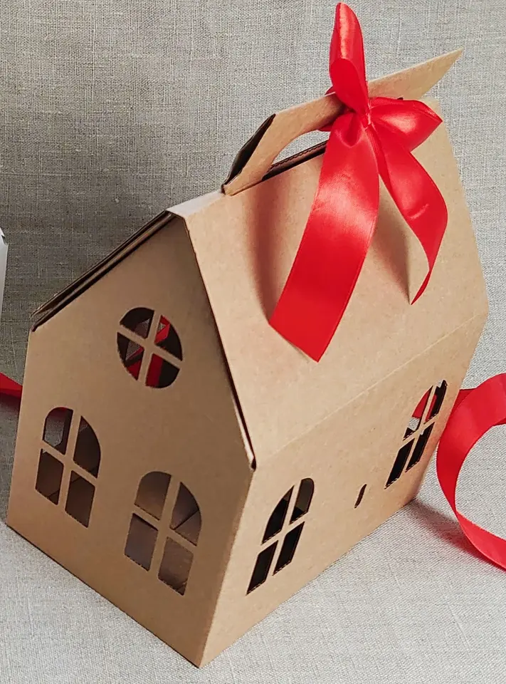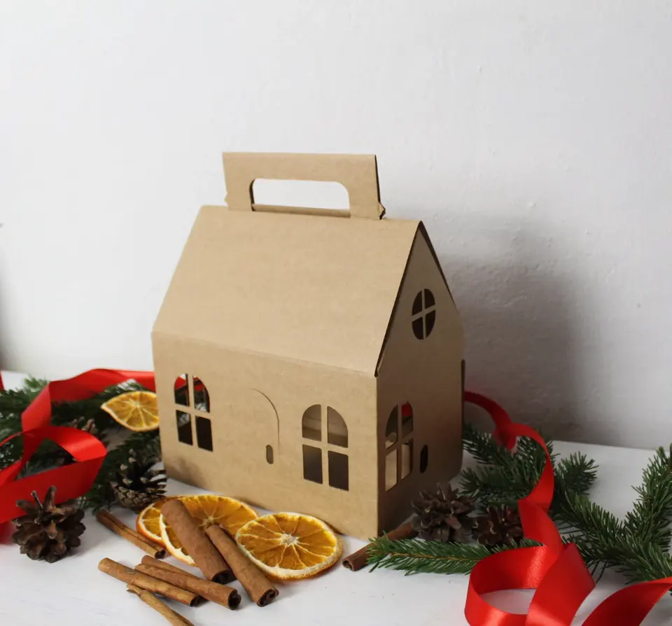 TRIHO TRb- 1133 House Shaped Gift Box Brown Craft Cardboard House Christmas Box Birthday Gift Box