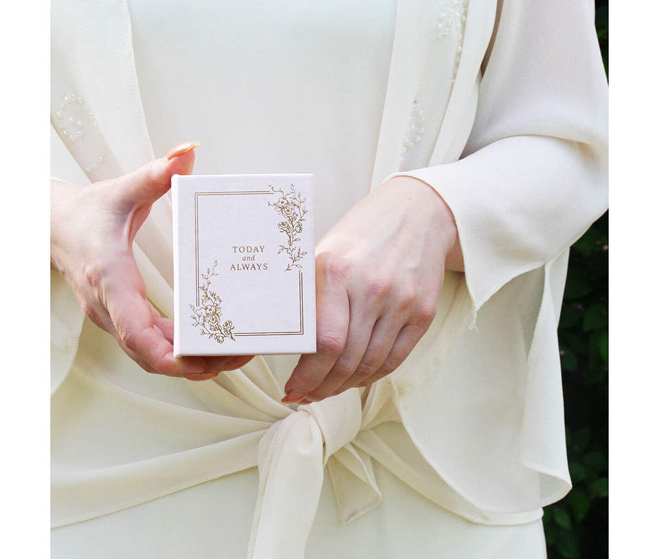 TRIHO TRb-1254 Wedding Ring Box Fairytales White Gold Recycled Materials Matt Lamination Embossing Customizable Rigid Proposal