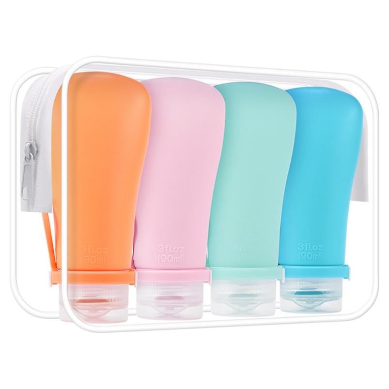 TSA Approved 4-Pack Portable Leak-Proof Silicone Travel Size Containers Soft Pocket Cosmetic Squeeze Bottles for Lotion