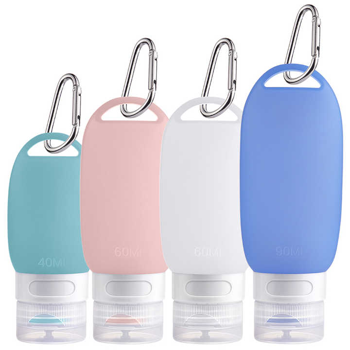 TSA Approved Portable Empty Silicone Shampoo Bottle Easy Squeeze Travel Keychain Bottles With Holder Hole for Lotion & Liquid