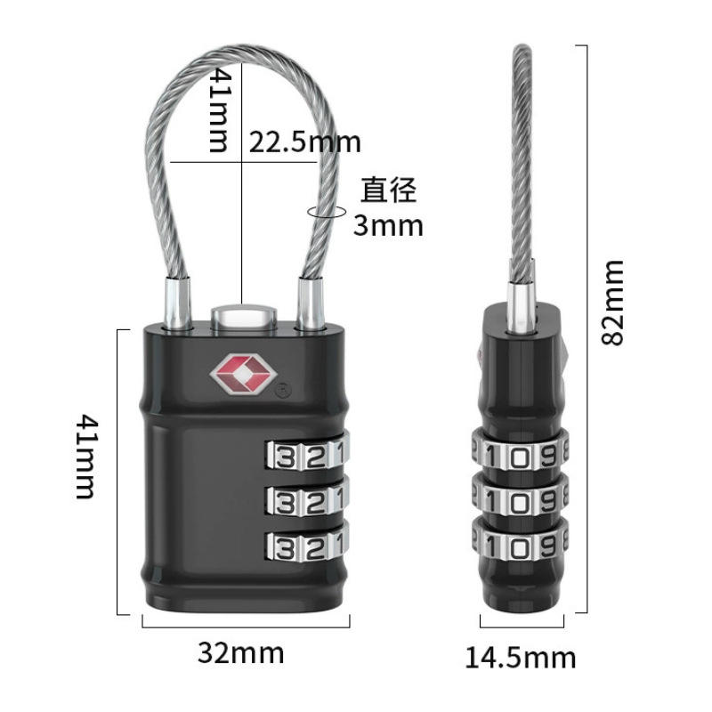 TSA Combination Lock With Steel Wire 3mm Diameter 41mm Height For Luggage Travel Security Padlock
