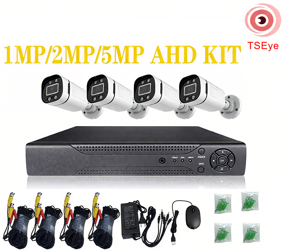 TSEye AHD Full Color 1MP 2MP 5MP Bullet Camera 4 Channel Cctv Camera System Analog Camera XVR Kit With DVR Cable for Outdoor Use