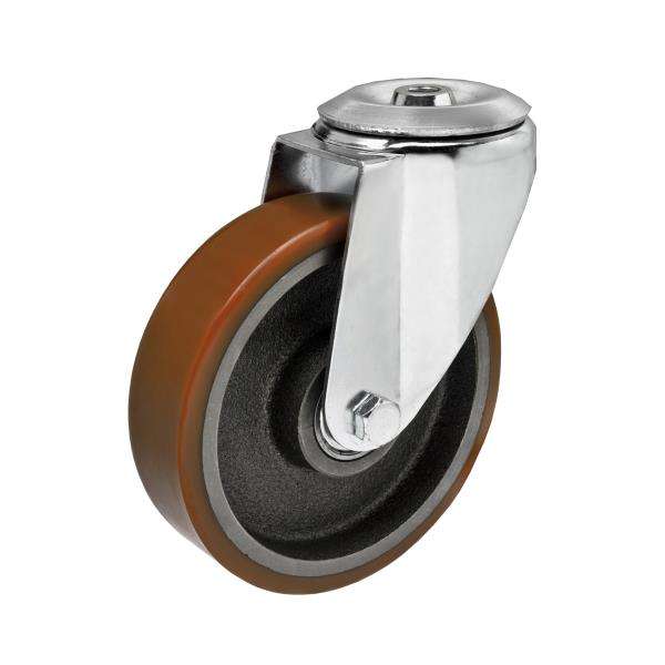 TTAKE RU0010309362855 Wheel with cast iron centre, with swivel support with through hole in pressed and galvanized sheet metal,