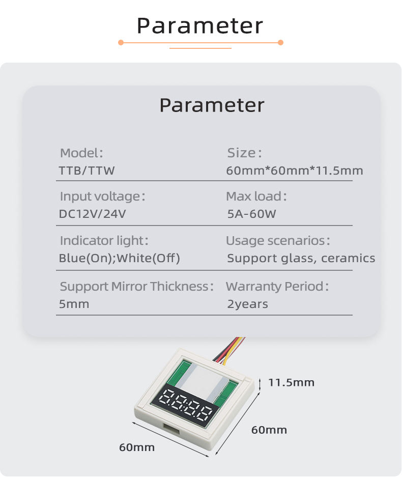 TTW-A03 Single Key 5A 60W LED Sensor Switch New DC12V/24V Touch Dimmer Time Temperature Display Manual Switch for Bathroom