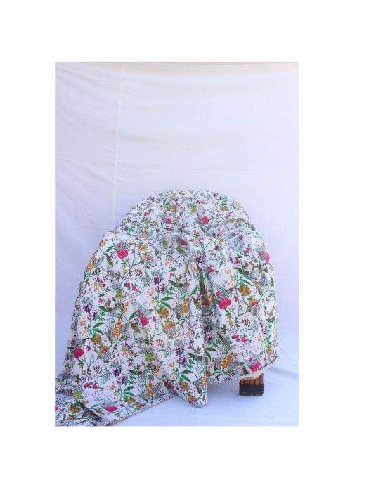Vintage TURQUOISE Paradise Print Kantha Quilt Handmade Cotton Kantha Throw Bedspread King Queen Beds Indian Style Bedding Set