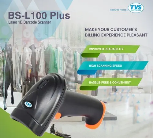 TVS BS-L100 PLUS 1D Wired Handheld Barcode Scanner Plug Play with USB Interface for Industrial & Retail Use Laser Light Source