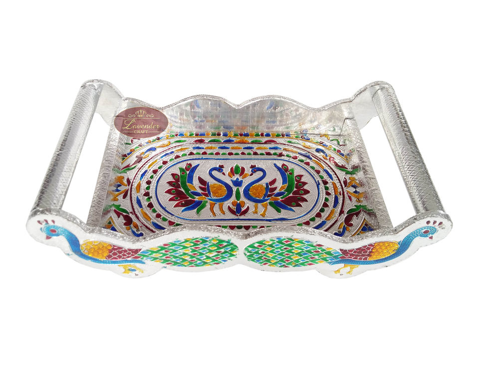 Colour : Golden/Silver/ Silver OxidizedPeacock designed Tray