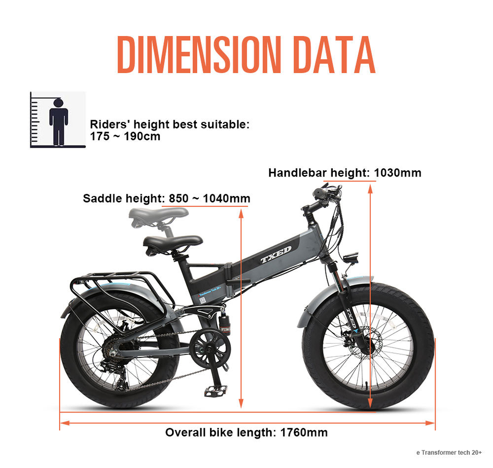 TXED 20 Inch Foldable Electric Bike 500W 48V 13AH Lithium Battery Rear Hub Motor 7 Speed Fat Tire