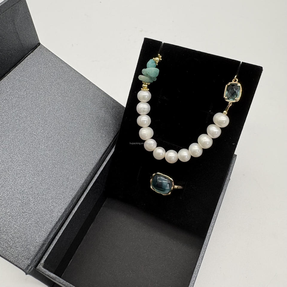 TY Custom Reusable Eco-friendly Book Style Green Paper Jewelry Packaging Box Matt Lamination Embossing Sponge Lining for