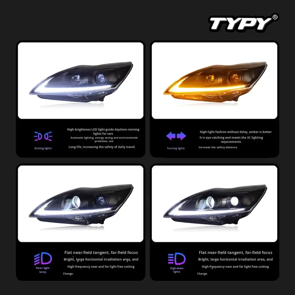 TYPY 09-14 for Classic Focus 12V 6000K LED Headlight Assembly with Daytime Running Lights & Flowing Turn Signals-New