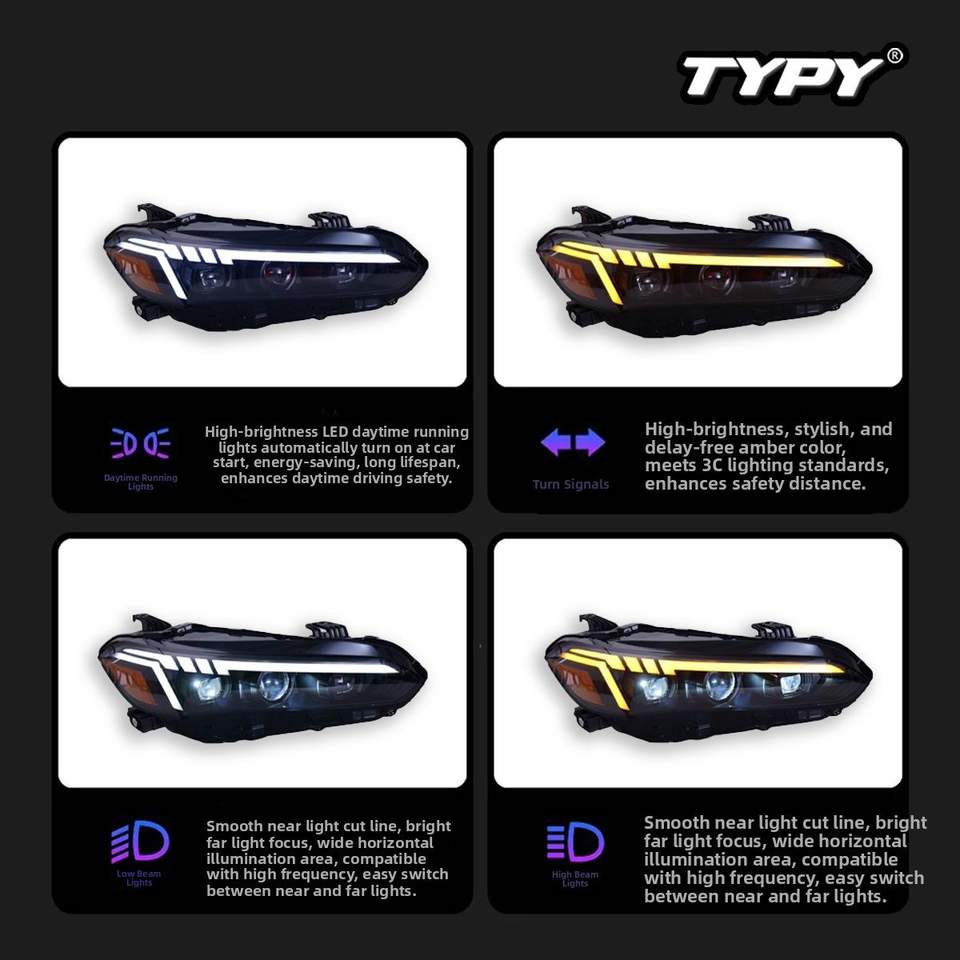 TYPY 12V for 2022-2025 11th Gen for for Headlight Assembly with Modified LED Lens RGB Daytime Running Lights Flowing Turn Signal