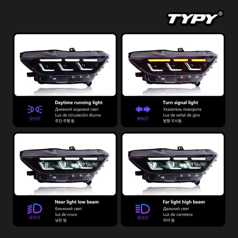 TYPY Car Headlight LED Car Lamps Daytime Running Lights Dynamic Turn Signals Car Accessories for Ford Mustang 2015-2022