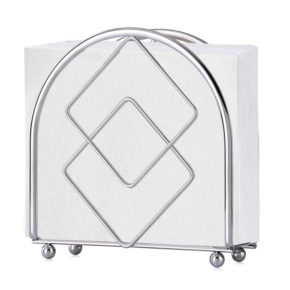Table Decorative Metal Napkin Holder Silver Finished Iron Napkins Collectible Stand for Home And Office Decor