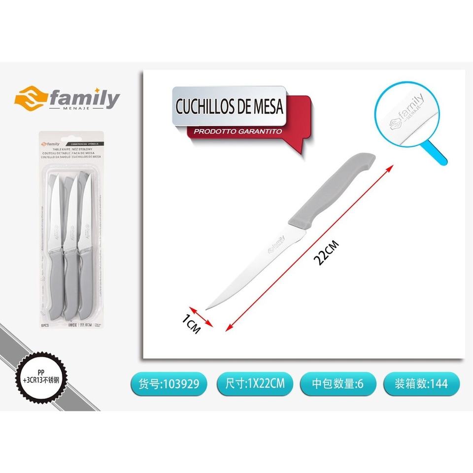 Table Knives with PP Handle 22cm 6pc - Elegant Table Cutlery