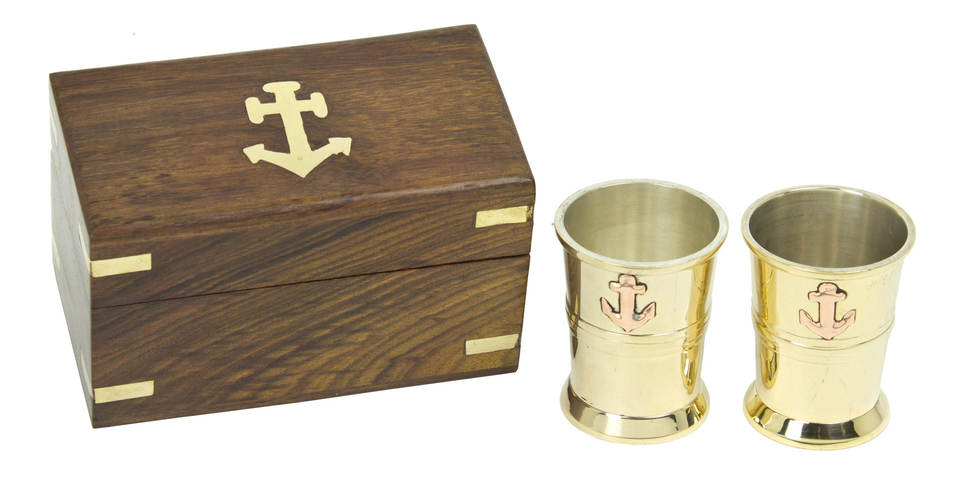 Table Top Brass Nautical Shot Glass Set of 4 Customized Nautical Cocktail Glass in Brass Metal Nautical Shot Glass Set of 4