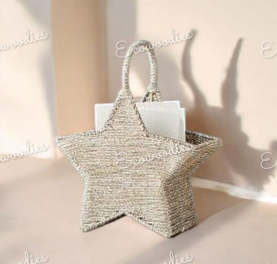 Table Top Magazine Holder Star Shape Bamboo Newspaper Holder With Carrying Handle Space-Saving Magazine Holder For Newspapers
