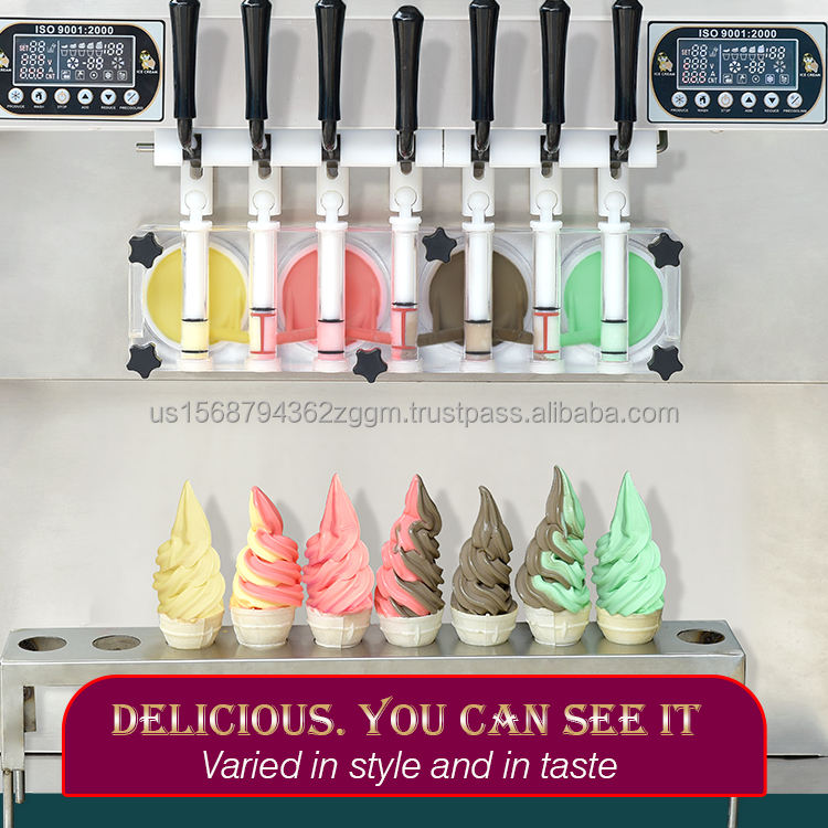 Table Top Mini Ice Cream Machine 7 Flavors Soft Ice Cream Machine Frozen Yogurt Ice Cream Machine for Small Business