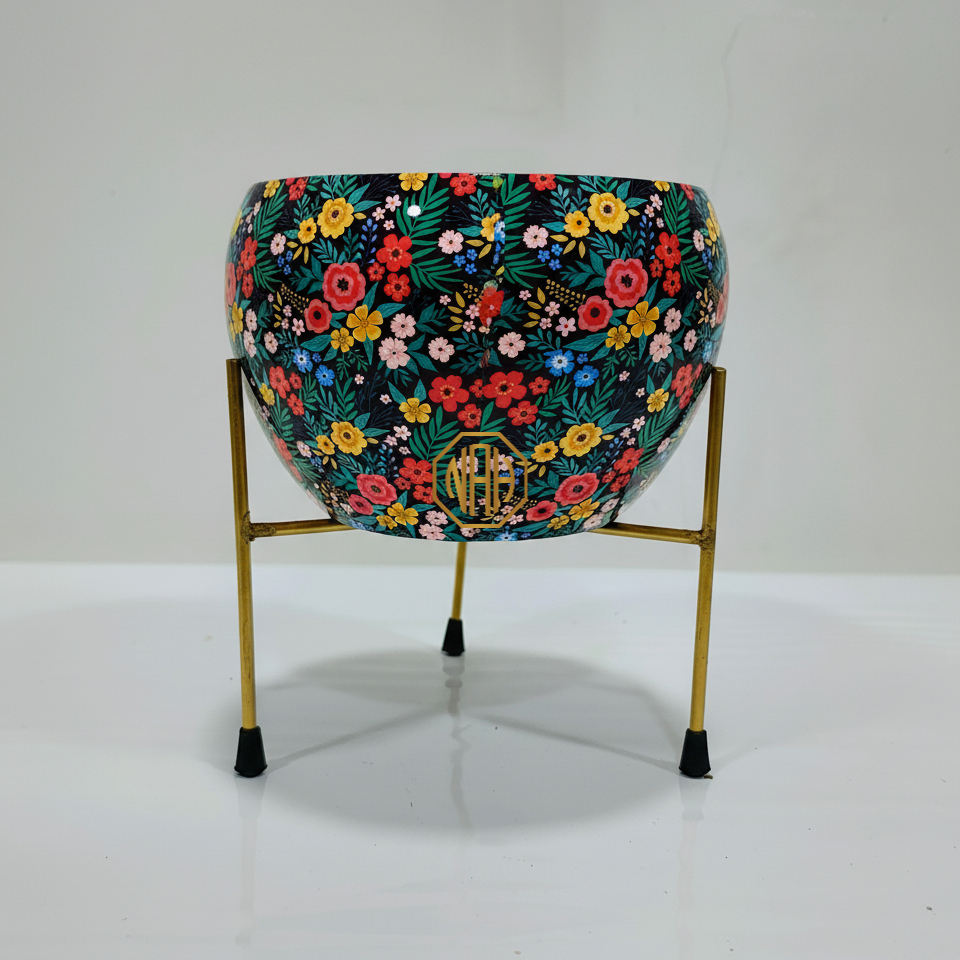 Table Top Pot Planter Iron Enamel Printed Center Table Decoration for Home Hotel Wedding Event India Manufacturer Exporter