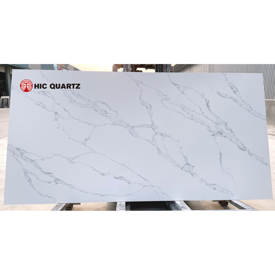 Table Top White and Black Heat Resistance Factory Polished Calacatta Quartz Stone Vein Calacatta Quartz Countertops Slabs White
