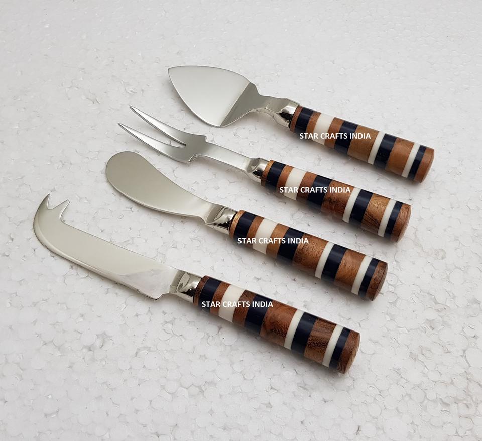 Table Top Kitchen Set Cheese Utensils Wood Made Creative Handle & Stainless Steel with Silver Plated of Cheese Knife Set