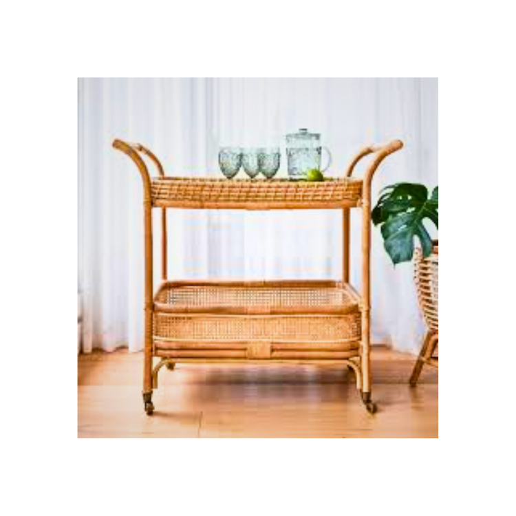 Rattan Bar Cart - Rattan Shelves