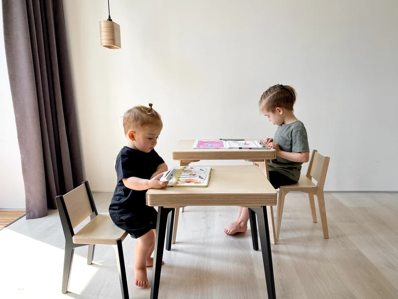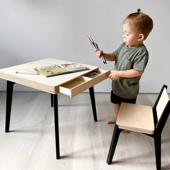 Wooden Montessori Children's Table for Kids Aged 1.5 to 8 Years-Activity & Learning Table with Two Drawers for School Park Use