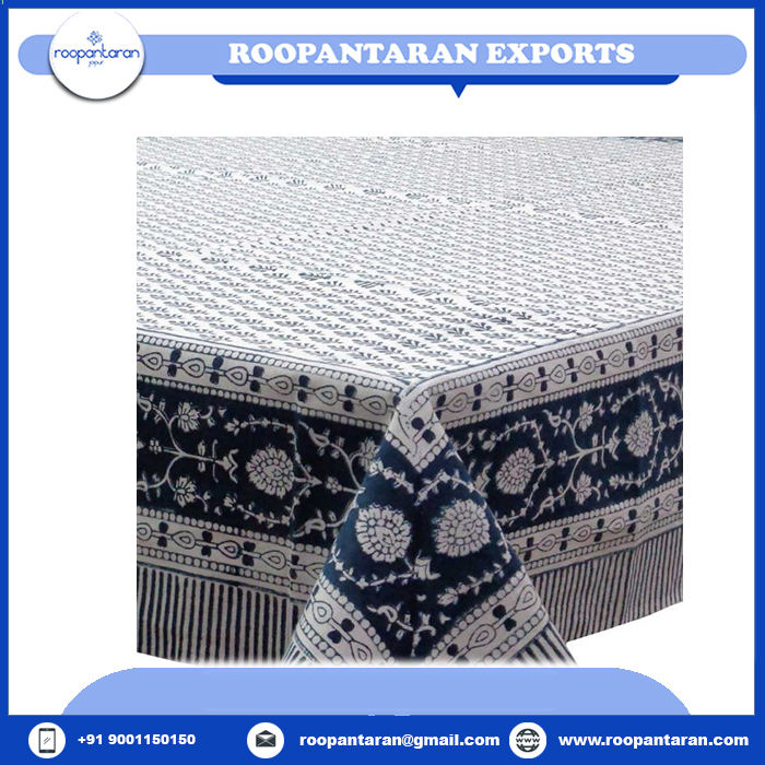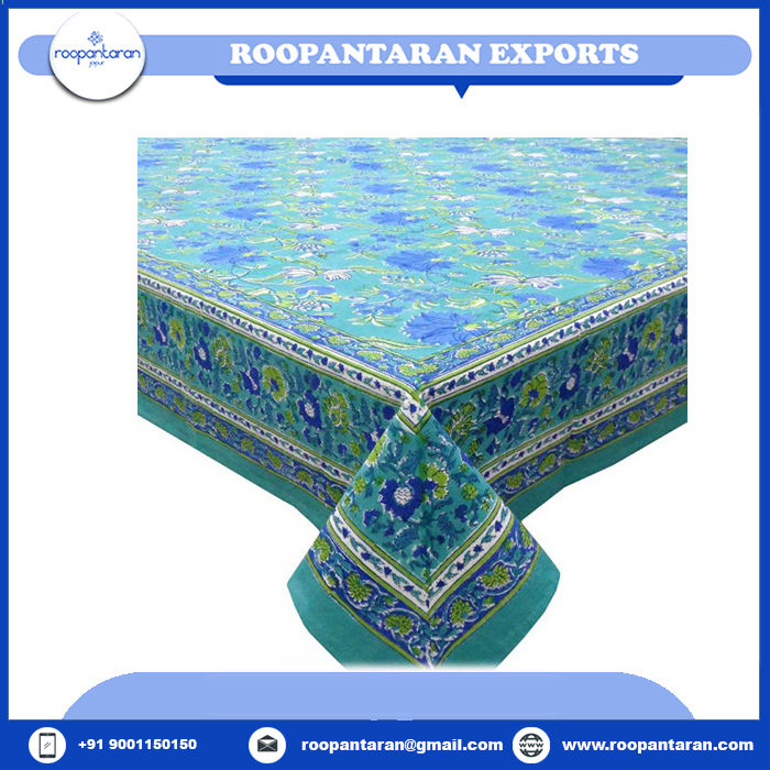 Hot Selling Elegant Handmade Block Printed 100% Cotton Eco-friendly Customizable Floral Design Tablecloth for Home & Wedding Use