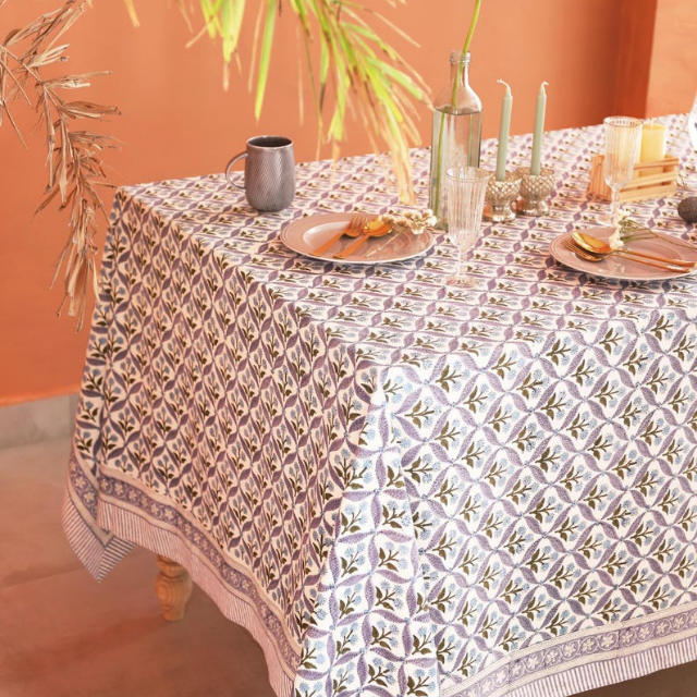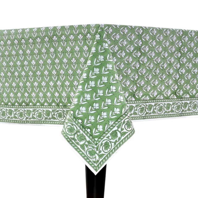 Tablecloth Wedding | 100% Cotton Hand Block Printed Floral Table Cover with Runner & Napkins | Boho Handmade Indian Dining Decor