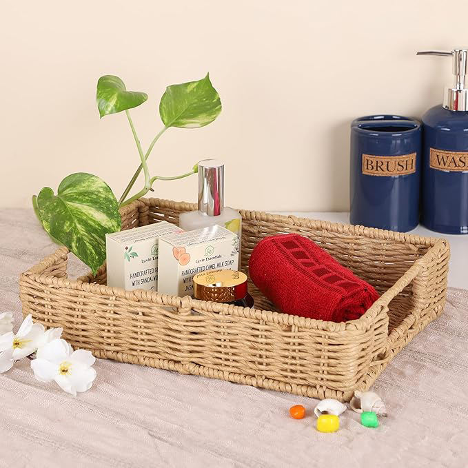 Tabletop Decoration Rattan Woven Serving Rectangle Storage Tray Handmade Serving Decorative Basket Woven Wicker Lowest Price