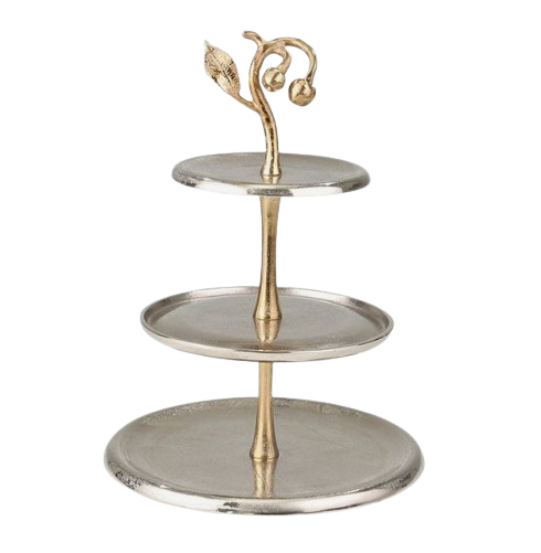 Tabletop Decorative Two Tier Antique Metal Cake Stand with Modern Silver Finishing Shiny Polished Metal Cake Stand