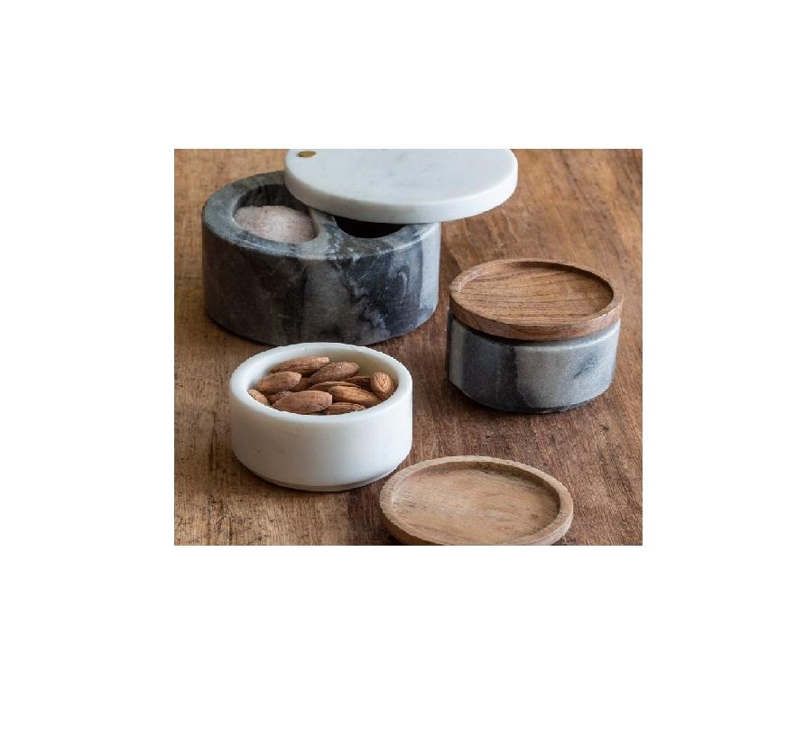Tabletop Marble Salt Sugar Bowl with Wooden Lids for Condiment Containers Spice Jar Spice & Herb Tools for Marble Bowl