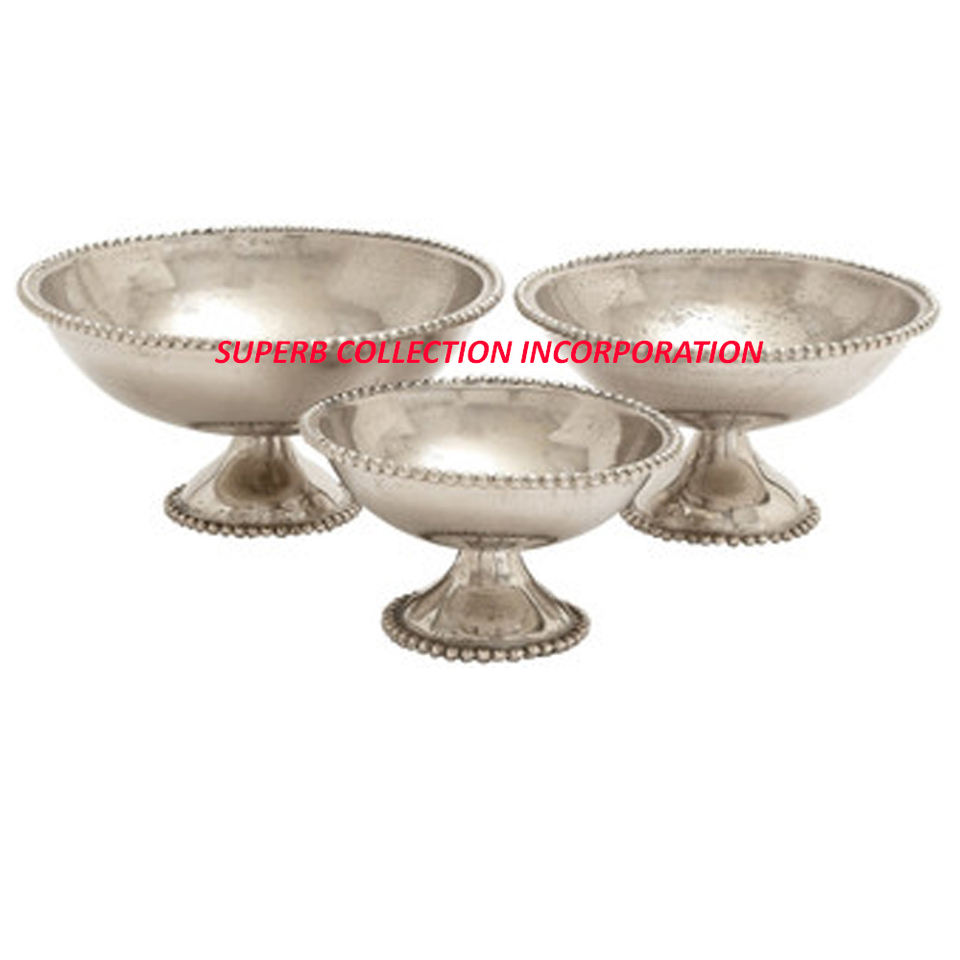 Tabletop Silver Nickle Plated Fruits Serving Bowl Handmade Custom Metal Aluminium OEM Factory Sale on Hot Sale