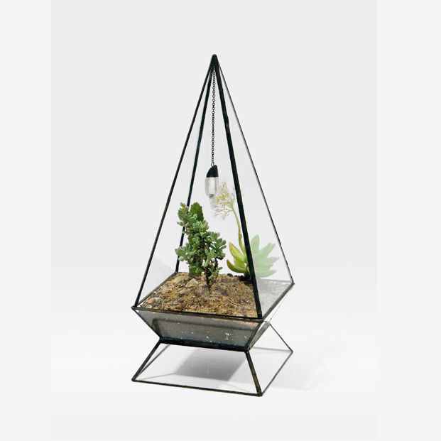 Tabletop Succulent Display Decorative Modern Design Pyramid Glass Geometric Terrarium in Black Finish Home Decorate Office Decor