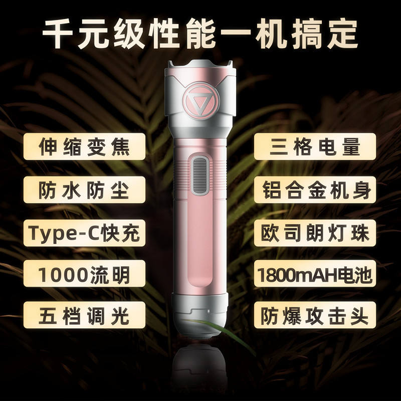 Tactical Flashlight Rechargeable Led Zoomable High Power Outdoor Use With Digital Display And Long Range Light