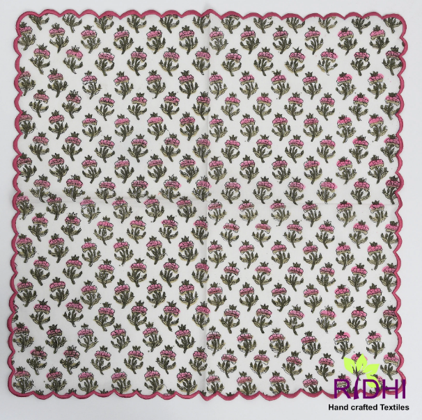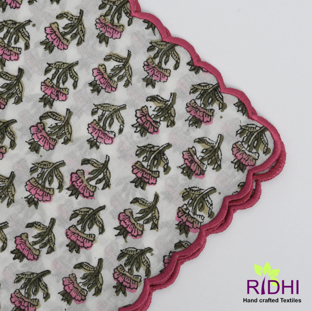 Taffy Pink Asparagus Army Green Handmade Cocktail Napkins Indian Hand Block Floral Embroidered Cotton Cloth Napkins Embroidered