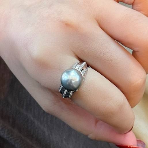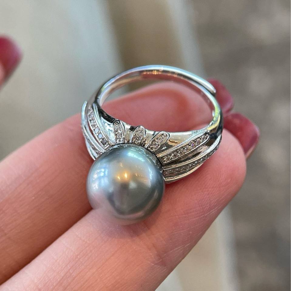 Tahiti Platinum Grey 10-11mm Large Face Flawless Precision S925 Ring Natural Sea Inlay Fashionable and Trendy with Gift Box