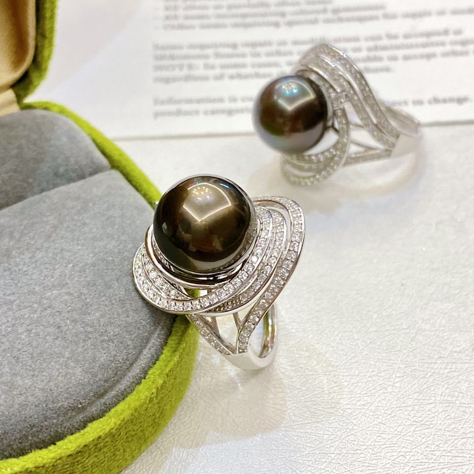 Tahitian Peacock Green & Black Pearl S925 Pure Silver Ring 12-11mm Smooth Delicate Skin Finish Paired with Gift Box