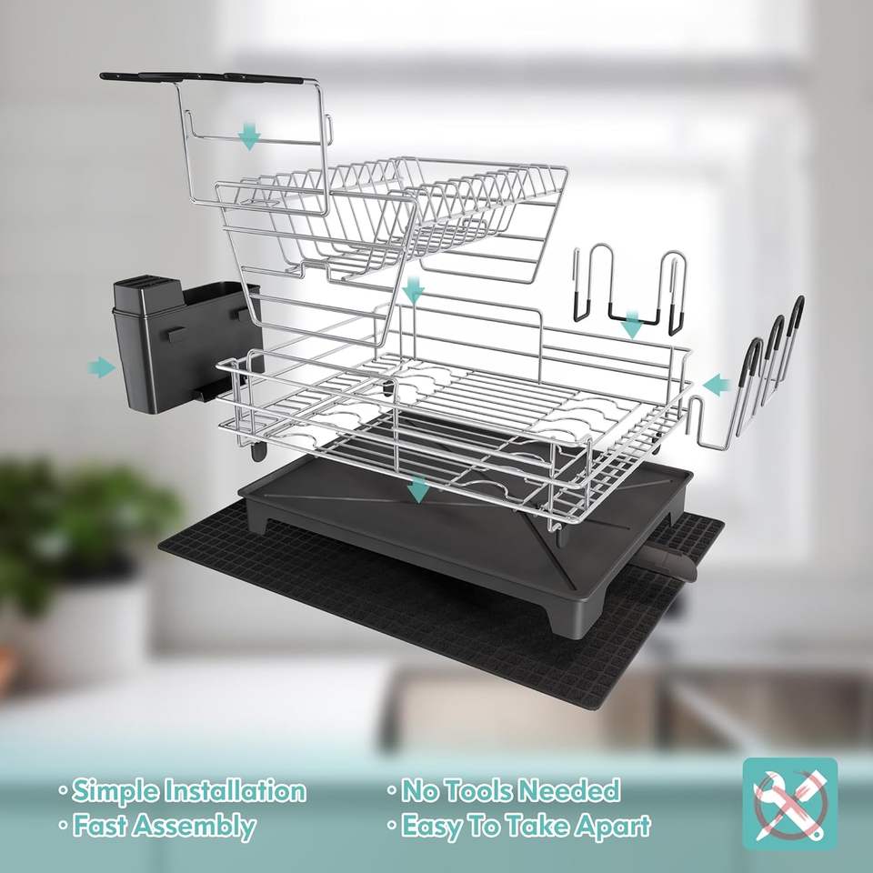 Tailor-Made Kitchen Dish Rack Double-Tier Metal Drainboard Set with Dish Drainer and Utensil/Cutting Board Holder