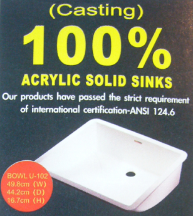 Taiwan 100% MMA Acrylic Solid Surface Sinks and Bowls