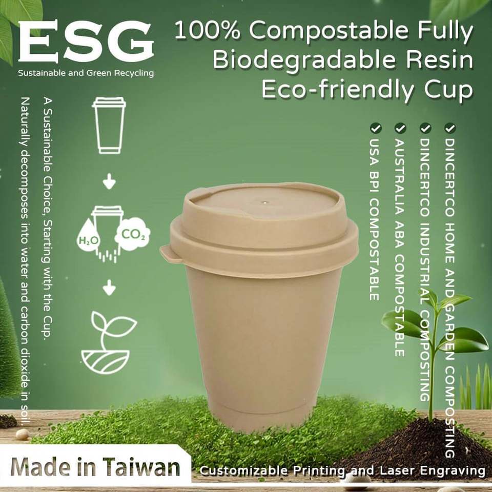 Taiwan High Quality Fully Biodegradable Compostable Reusable 12oz Tea Fiber Plastic Cups Premium Drinkware