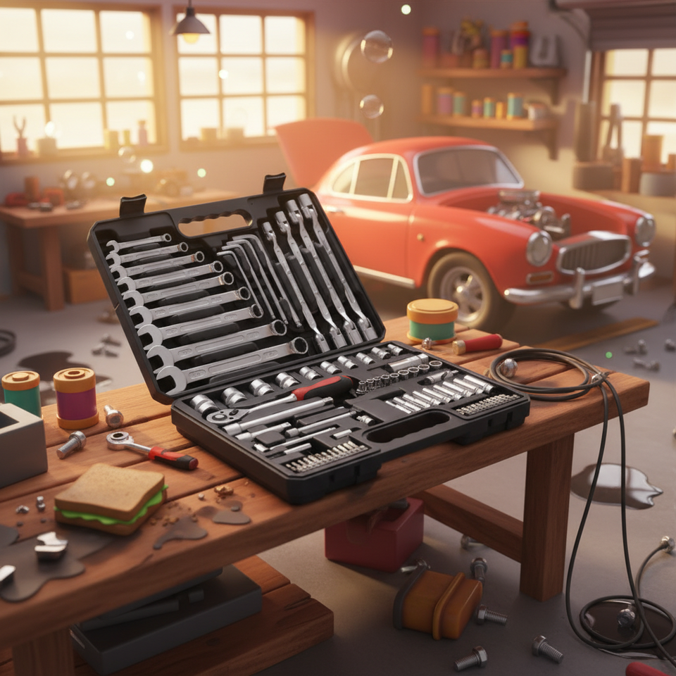 hex keys, extension bar, SPARK PLUG, universal joints, ratchet handle, Adapters, Socket, deep socket, spinner handle, sliding T bar, bits, wrenchtool includes