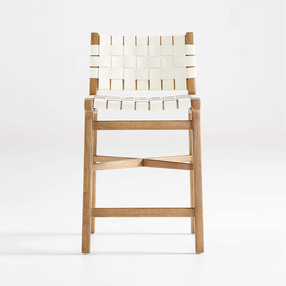Taj White Leather Counter stool Made of Solid Teak Wood with Leather and Natural Color Finish For Indoor and Outdoor.